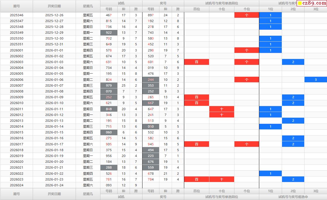 首页 > 福彩3D预测 > 26年024期福彩3D试机号走势图表分析