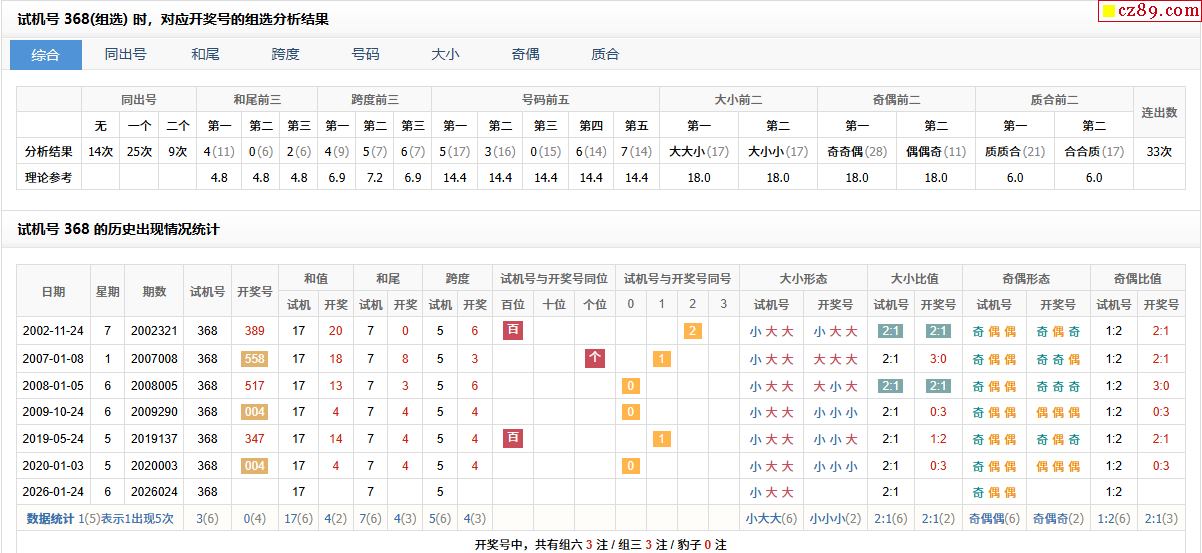 024期福彩3D试机号368对应开奖号的组选分析结果-「3D开机号」今天-试机号-3d近10期开机号